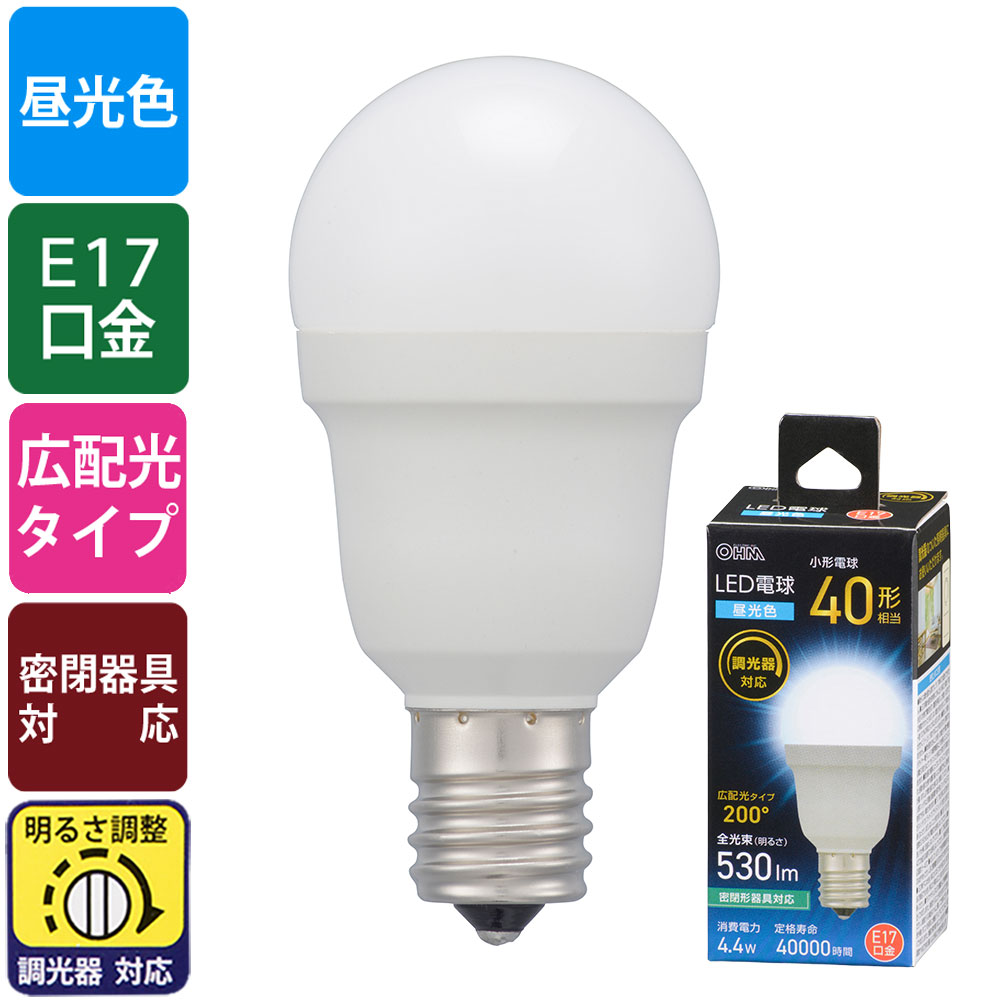 - LED電球小形 E17 40形相当 調光器対応 昼光色 [品番]06-5491