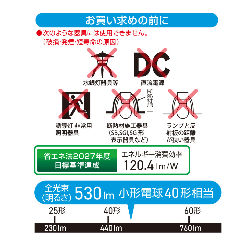 - ● 小形電球40形相当の明るさ