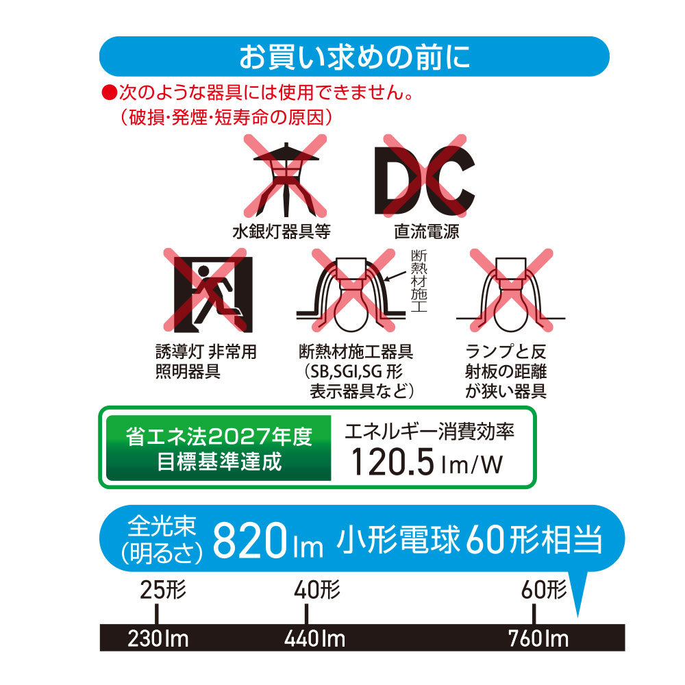■ エネルギー消費効率:120.5 lm/W