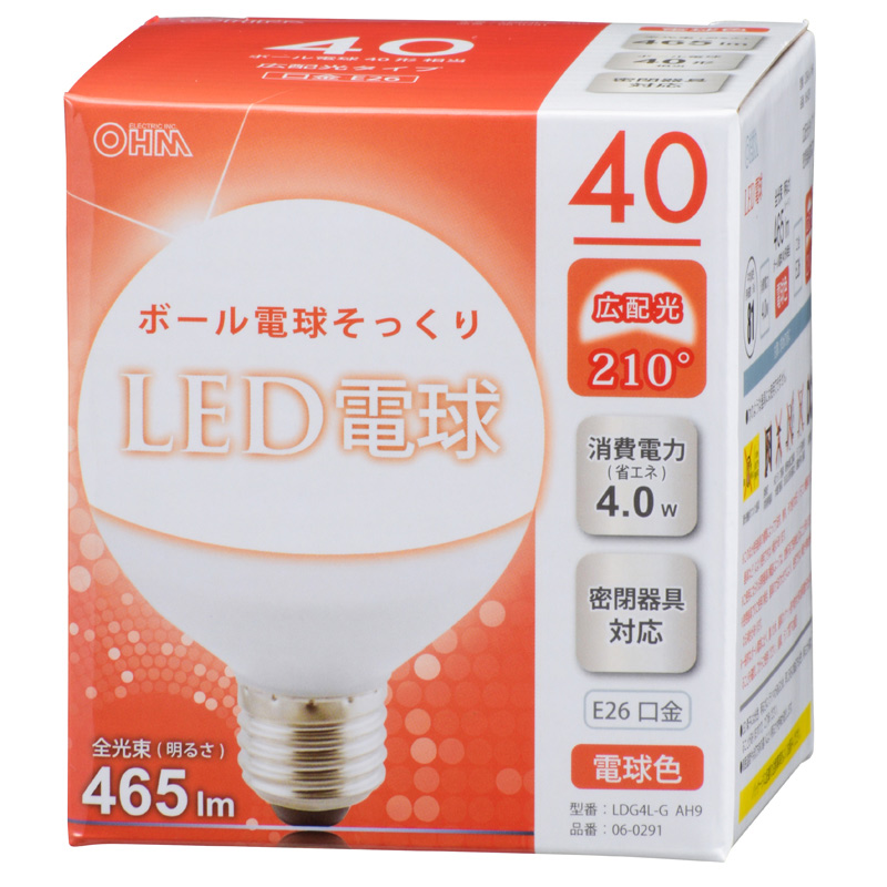 LED電球 ボール形 40形相当 E26 電球色 [品番]06-0291