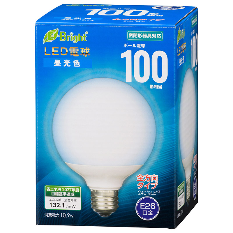 LED電球 ボール電球形 E26 100形 昼光色 全方向 [品番]06-4402