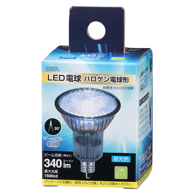 - LED電球 ハロゲン電球形 E11 中角 昼光色 [品番]06-3402