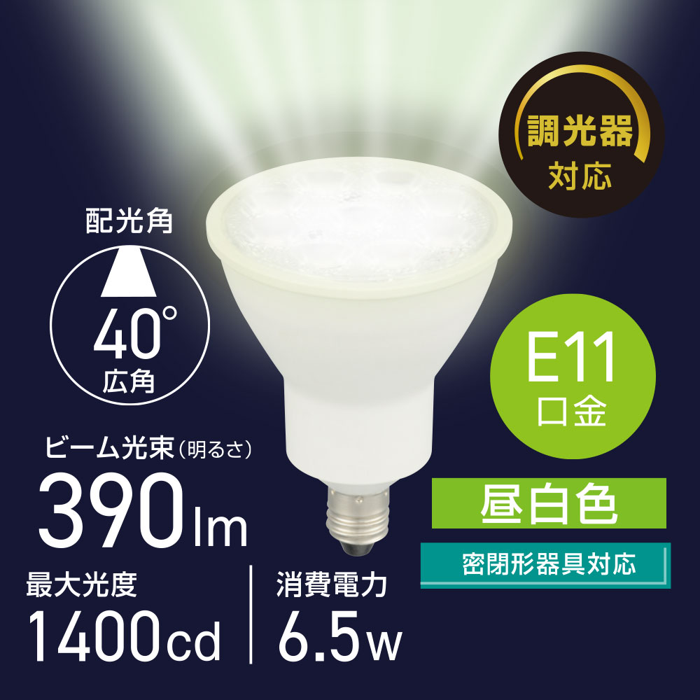 - LED電球 ハロゲンランプ形 E11 調光器対応 広角タイプ 昼白色 [品番]06-5497