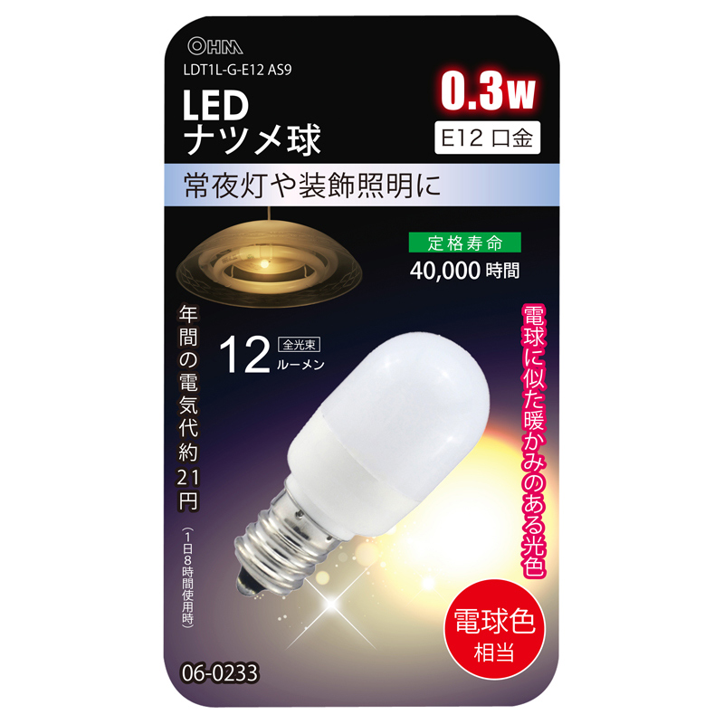 - ● 常夜灯や装飾照明に…電球に似た暖かみのある光色のLEDナツメ球です。