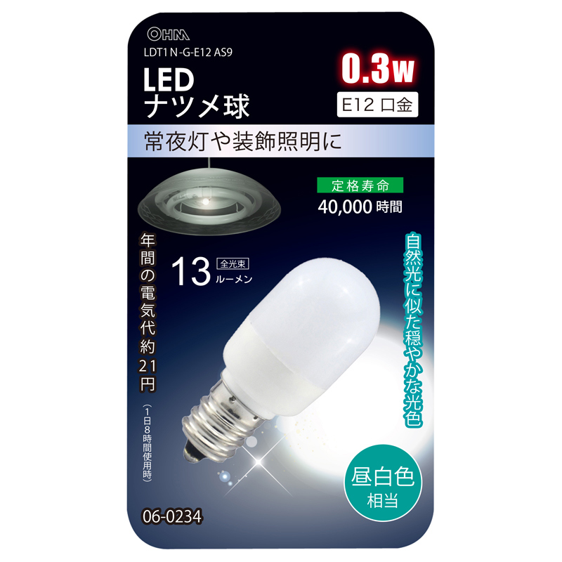 - ● 常夜灯や装飾照明に…自然光に似た穏やかな光色のLEDナツメ球です。