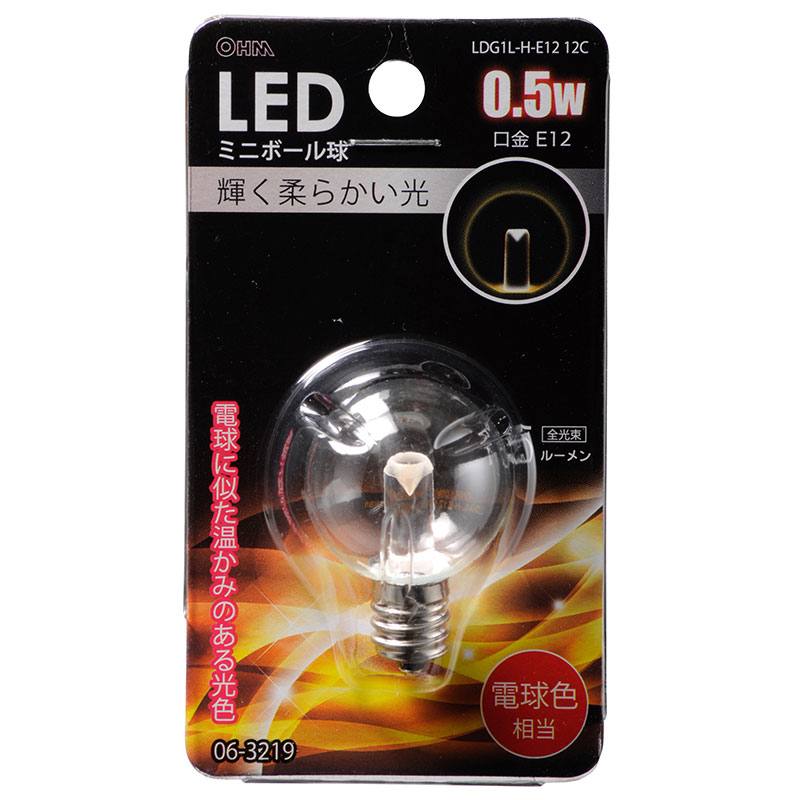 LEDミニボール球装飾用 G30/E12/0.5W/15lm/クリア電球色 [品番]06-3219