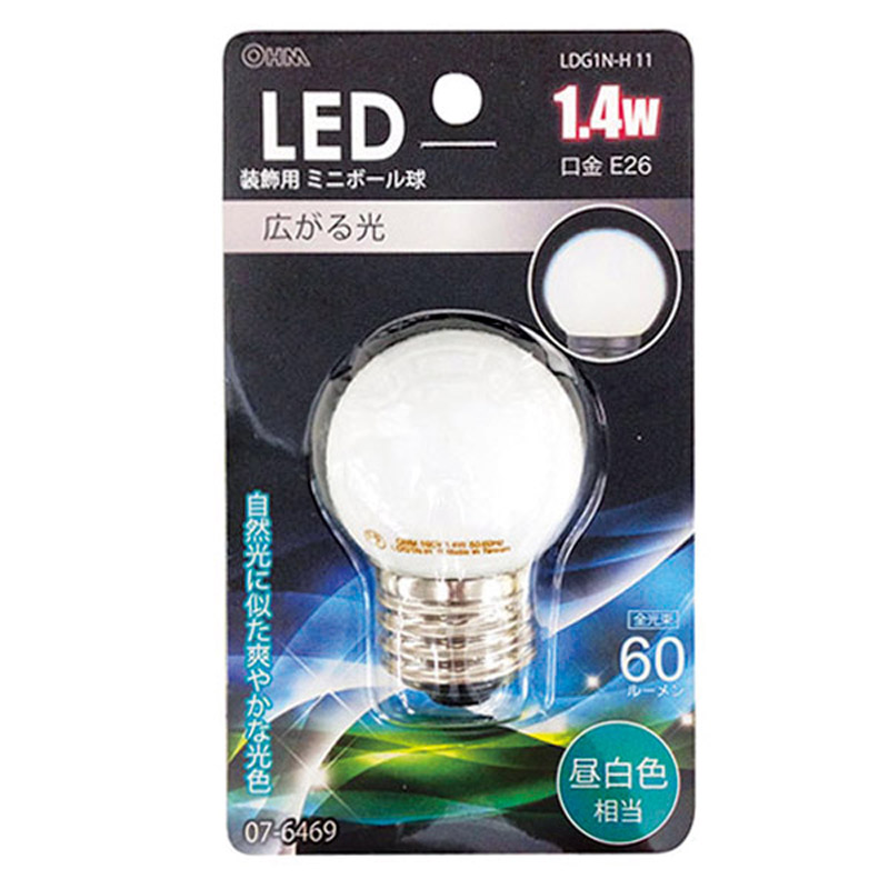 LEDミニボール球装飾用 G40/E26/1.4W/60lm/昼白色 [品番]07-6469