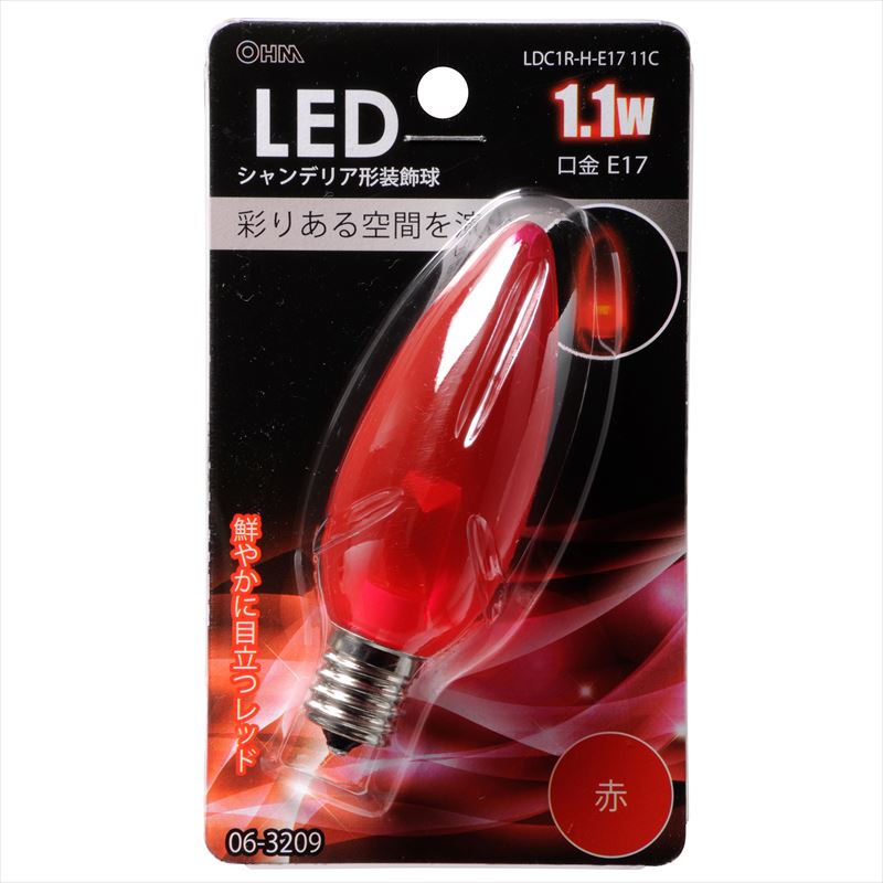 LEDシャンデリア形装飾用/C32/E17/1.1W/クリア赤色 [品番]06-3209