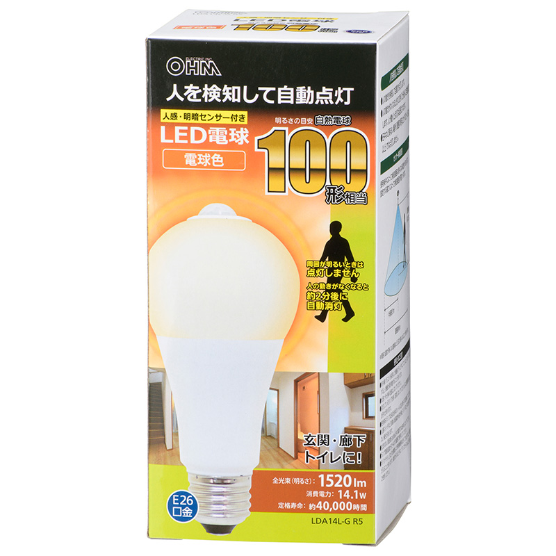 - LED電球 E26 100形相当 人感明暗センサー付 電球色 [品番]06-3549