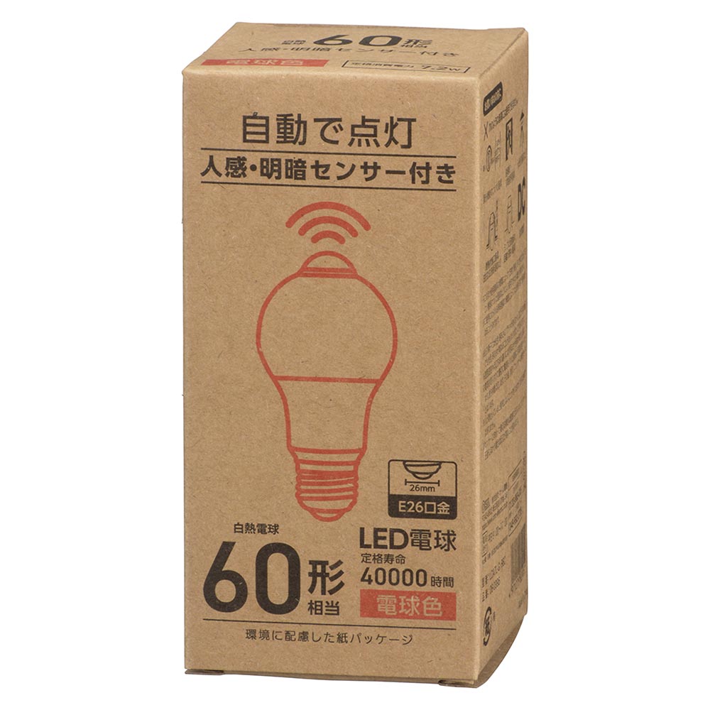 - LED電球 E26 60形相当 人感・明暗センサー付 電球色 [品番]06-0995