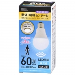 - LED電球 E26 60形相当 動体・明暗センサー付 電球色 [品番]06-5583