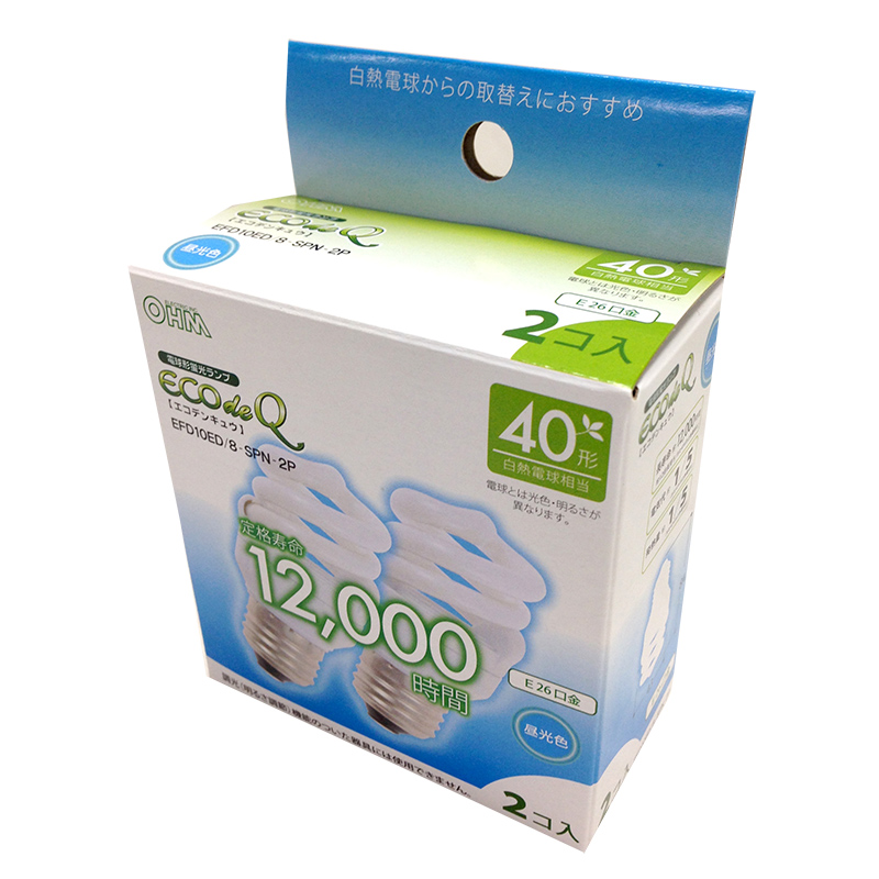 - 電球形蛍光灯 スパイラル形 E26 40形相当 昼光色 エコデンキュウ 2個入 [品番]06-0252