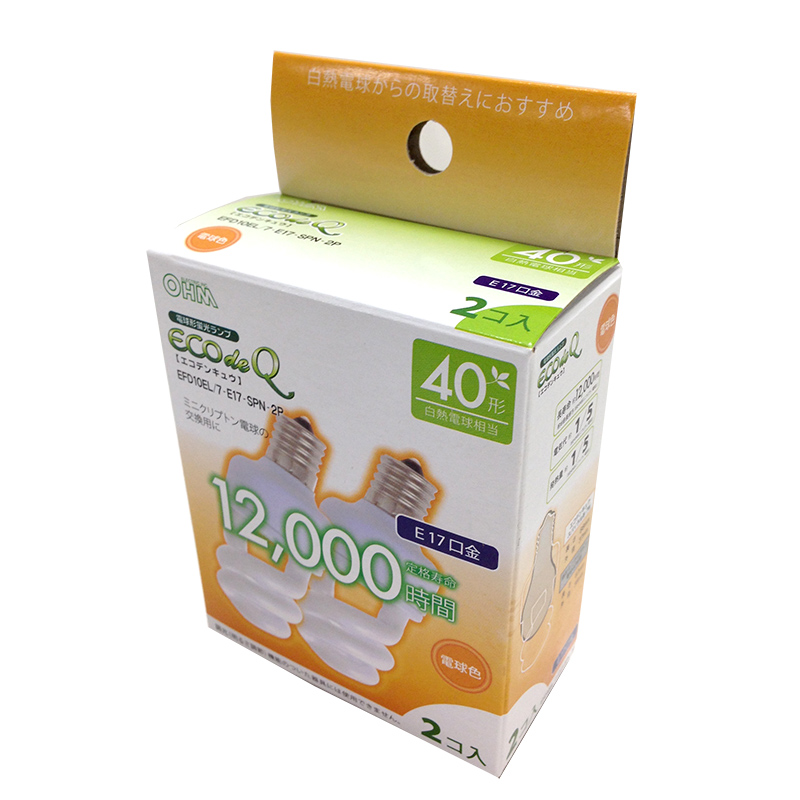 - 電球形蛍光灯 スパイラル形 E17 40形相当 電球色 エコデンキュウ 2個入 [品番]06-0255