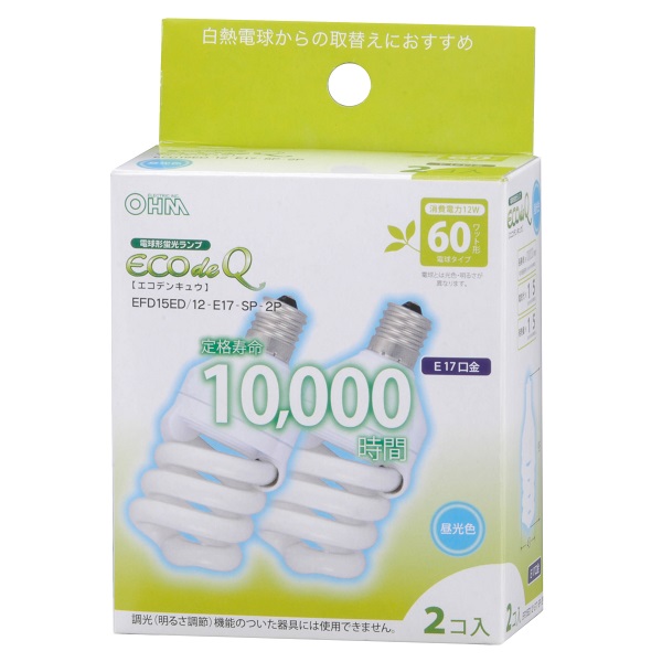 ![電球形蛍光灯 スパイラル形 E17 60形相当 昼光色 エコデンキュウ 2個入 [品番]04-2127](https://www.ohm-electric.co.jp/wp/wp-content/uploads/2025/11/04212700-360x360.jpg)