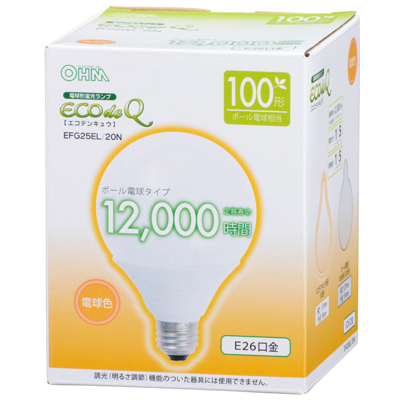 - 電球形蛍光灯 ボール形 E26 100形相当 電球色 エコデンキュウ [品番]06-0265