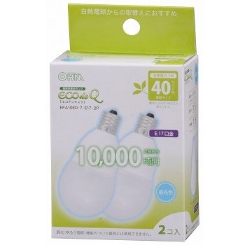 - 電球形蛍光灯 E17 40形相当 昼光色 エコデンキュウ 2個入 [品番]04-1443