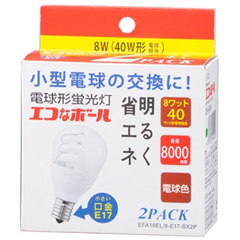 - 電球形蛍光灯 E17 40形相当 電球色 エコなボール 2個入 [品番]04-5400