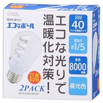 - 電球形蛍光灯 E26 40形相当 昼光色 エコなボール 2個入 [品番]04-9235