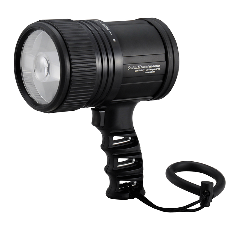- ● LED強力ライトにフォーカス機能を搭載しました。遠距離まで焦点を合わせられるズームレンズ機構です。