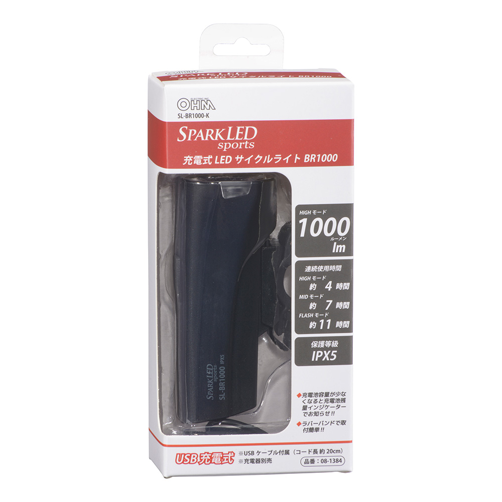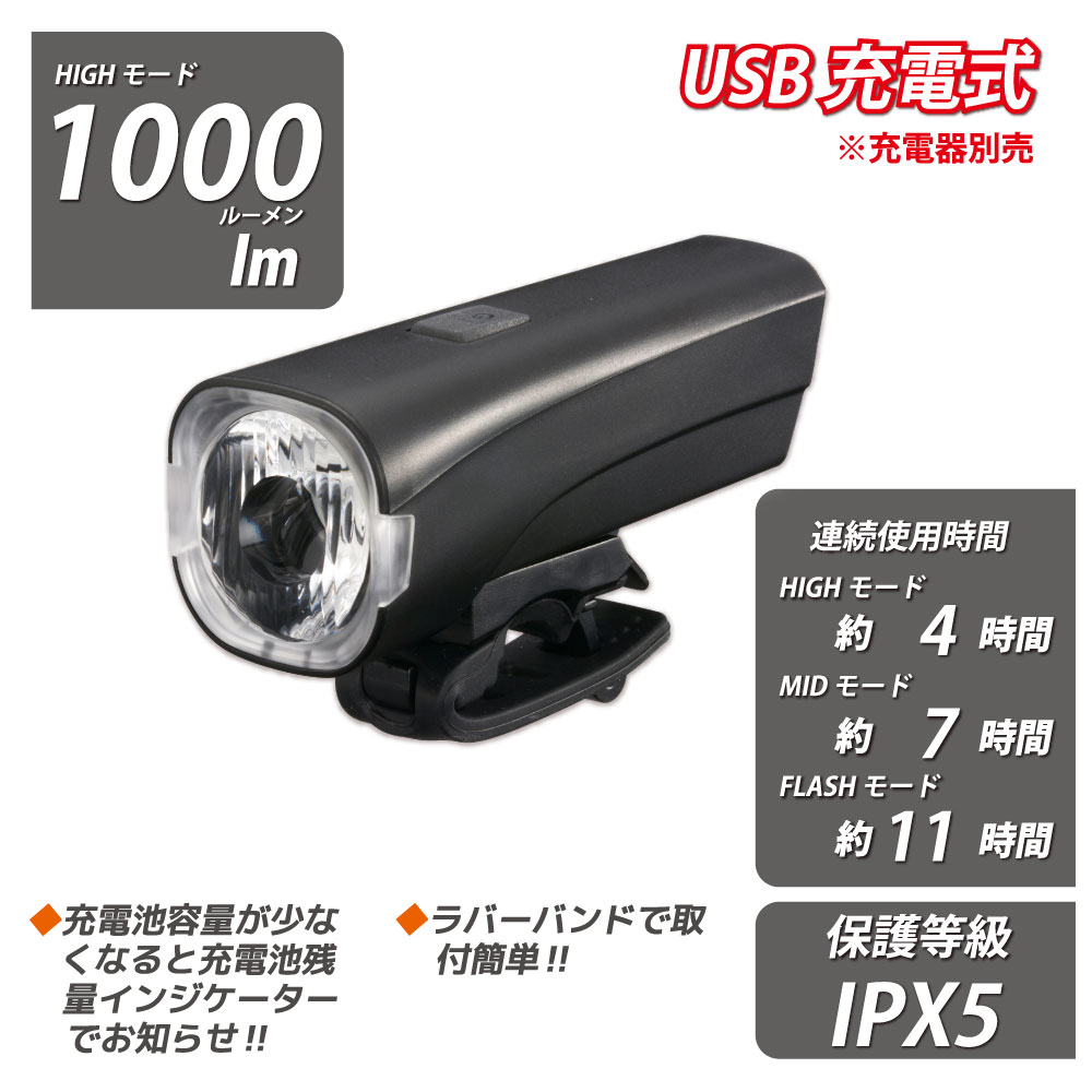 充電式LEDサイクルライト 1000ルーメン 調光機能 [品番]08-1384