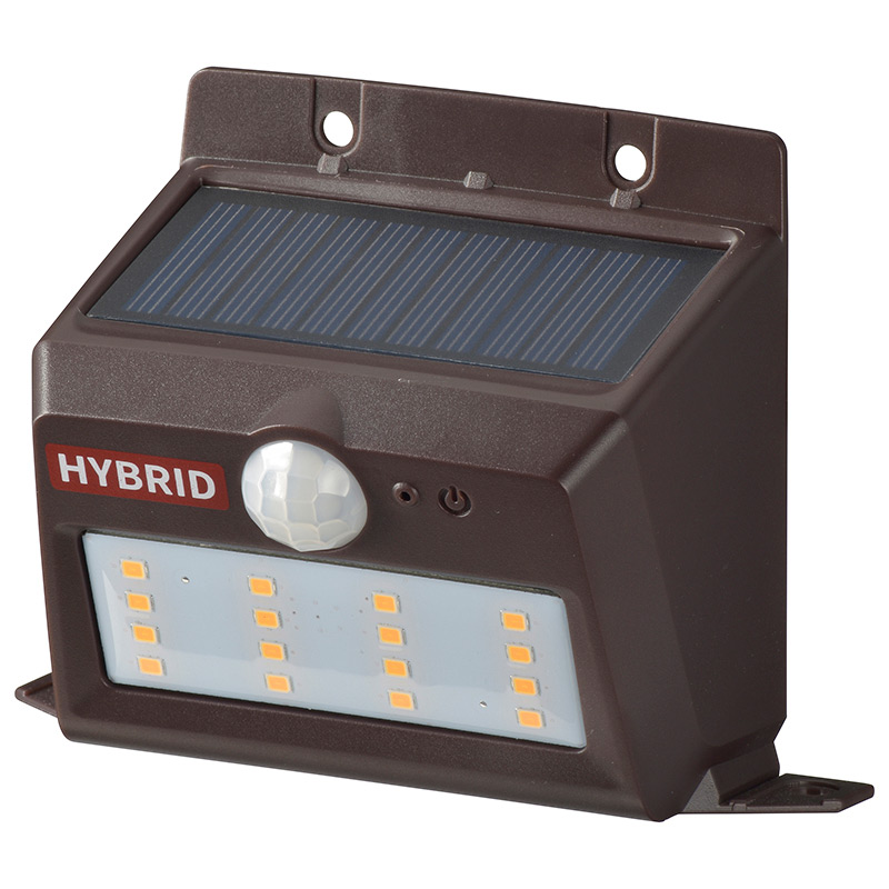 monban ソーラー&乾電池センサーウォールライト 400lm 置型ブラウン [品番]06-4235