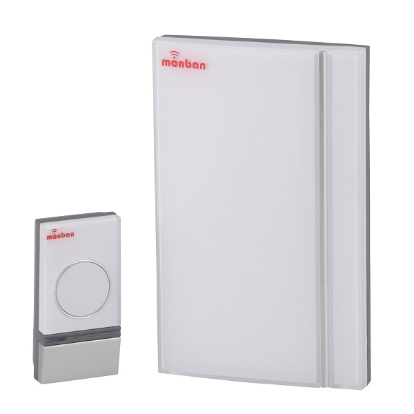 monban ワイヤレスチャイム 押しボタン送信機+AC電源式受信機 [品番]08-0502 - 販売終了