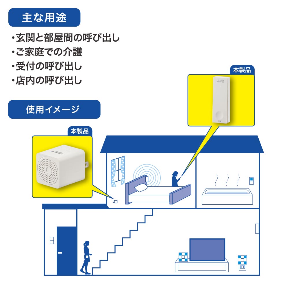 ※ 本品は報知・連絡用であり、犯罪や生命にかかわる緊急呼び出し等の用途にはお使いいただけません。