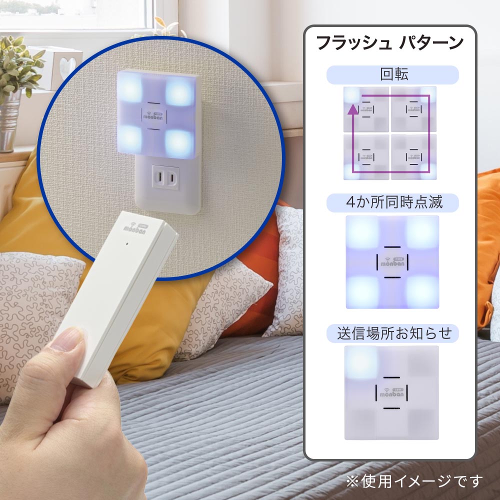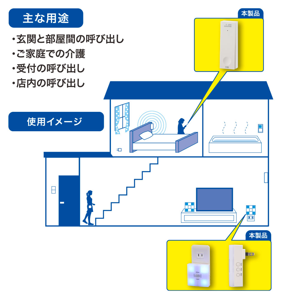 - ● 送信機のボタンを押すと離れた場所に音と光フラッシュでお知らせ