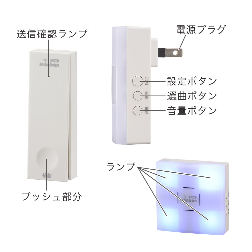 - monban CUBE II ワイヤレスチャイムセット 自家発電式押しボタン送信機+光フラッシュAC電源式受信機 [品番]08-1919