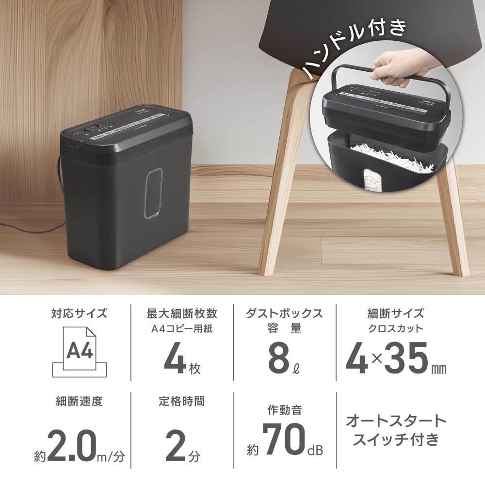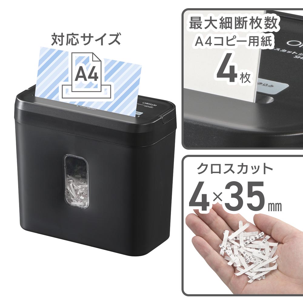 - ● A4コピー用紙(64g/m2)を最大4枚まで細断可能