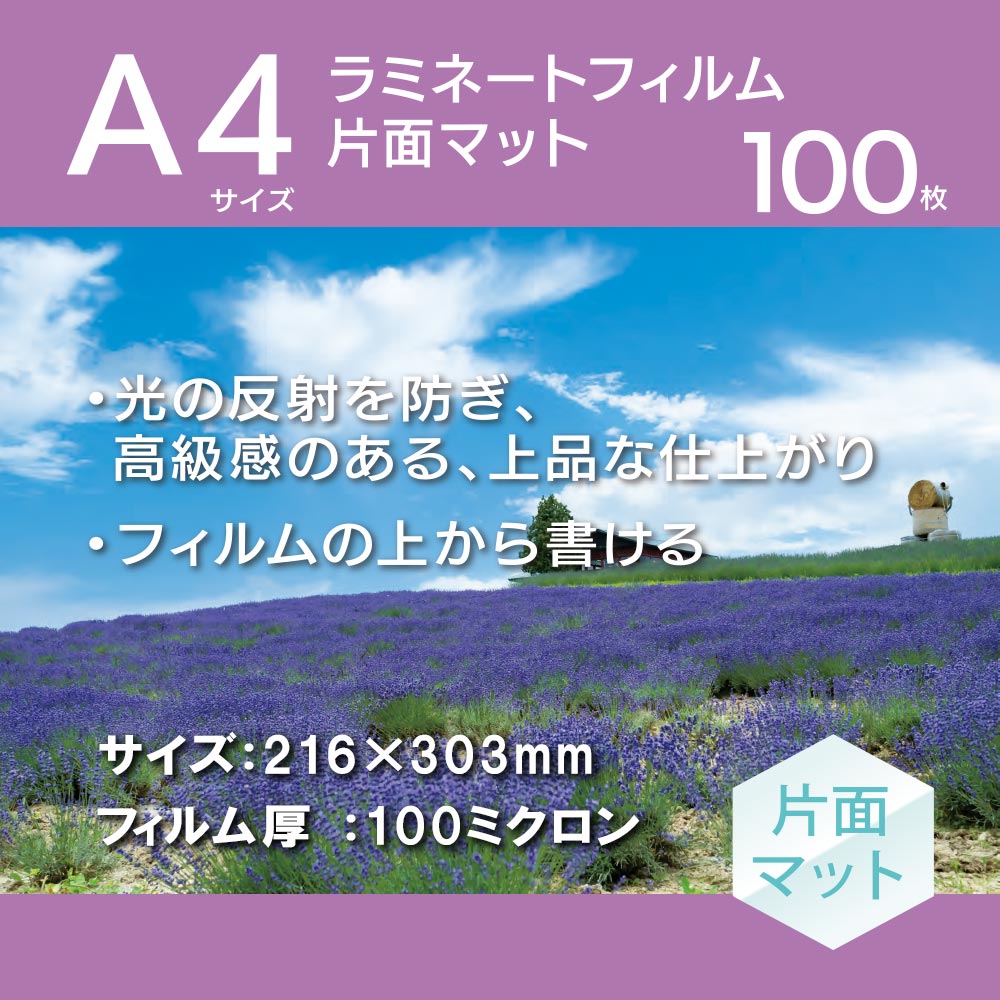 OffiStyle ラミネートフィルム片面マット100ミクロン A4 100枚 [品番]01-4372