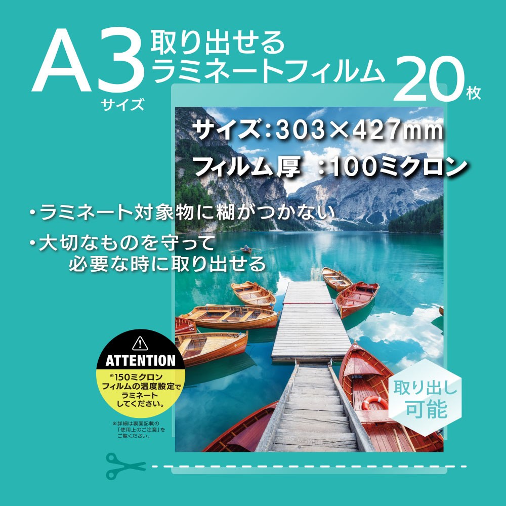 ※ ラミネートフィルムは1度だけしか使えません。フィルムをはがしての再利用はできません。