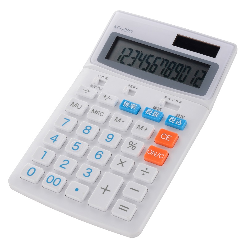 ■ 計算機能:消費税計算、四則(加減乗除)計算、パーセント計算、定数計算、メモリー計算、