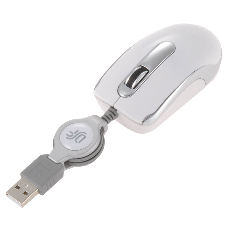 - ● 持ち運びに便利なよう、小さめのマウスにケーブルを巻き取れるリールをつけました。