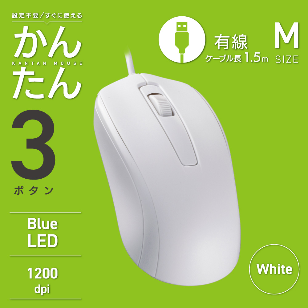 - PCGEAR かんたん光学式マウス Mサイズ ホワイト [品番]01-3665