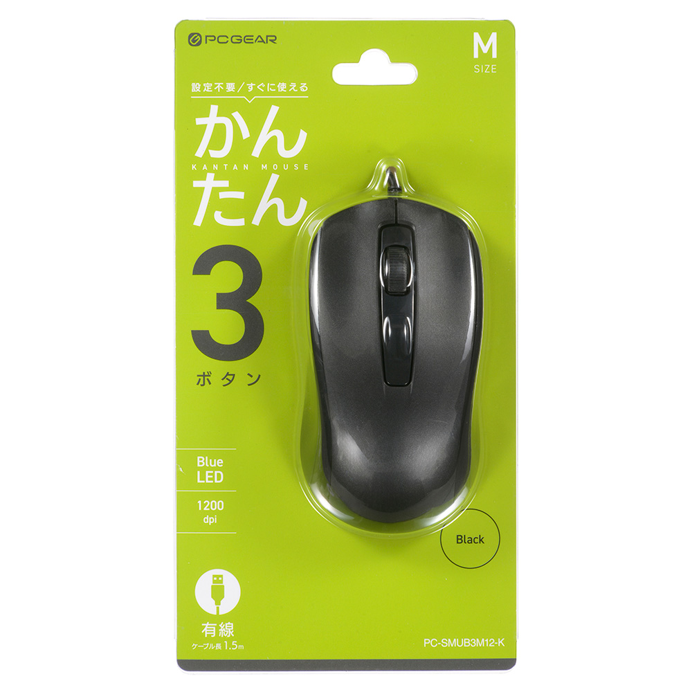 - PCGEAR かんたん光学式マウス Mサイズ ブラック [品番]01-3666