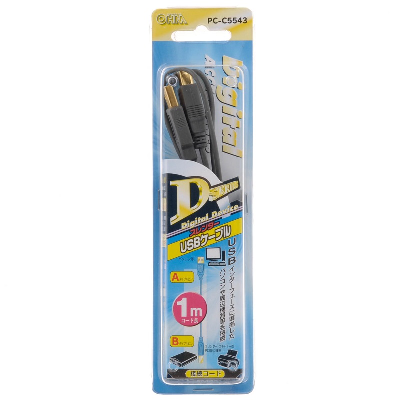 スレンダーUSBケーブル USB Aタイプ-USB Bタイプ1m [品番]01-5543