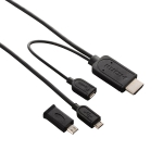 - ● MHLに対応のスマートフォンと、HDMI端子を持つ液晶テレビやモニターなどを接続する変換ケーブルです。