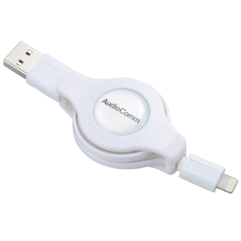 AudioCommライトニングケーブル 巻き取り式 1m [品番]01-7021