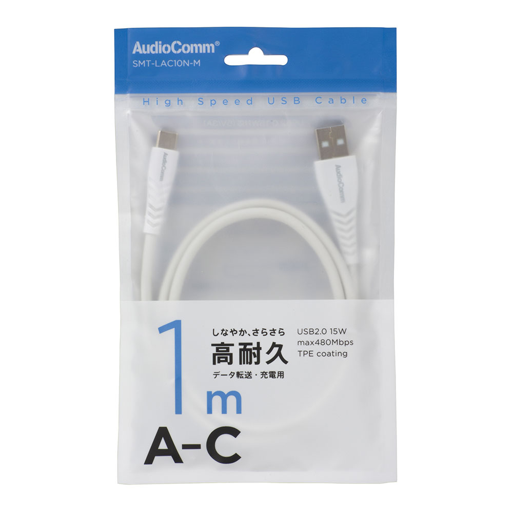 AudioComm USBケーブル USB-A to C 1m 高耐久 ホワイト [品番]01-7234