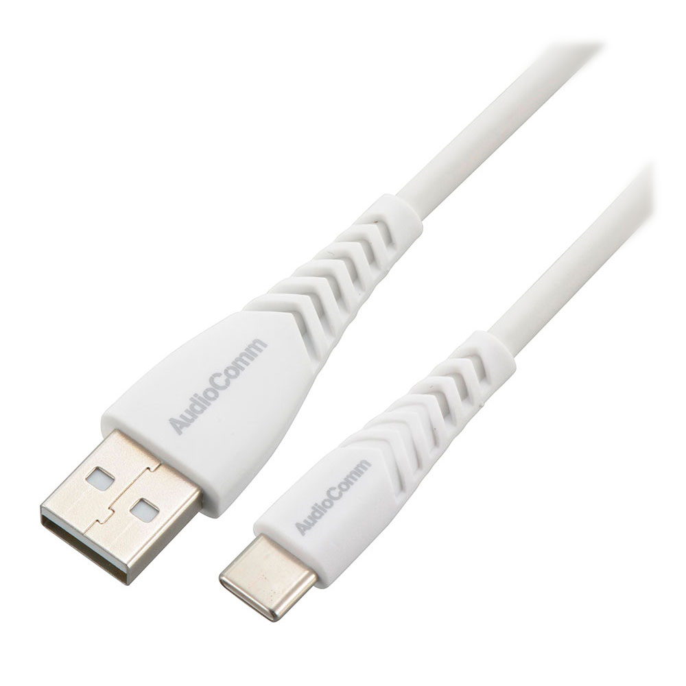 AudioComm USBケーブル USB-A to C 2m 高耐久 ホワイト [品番]01-7235