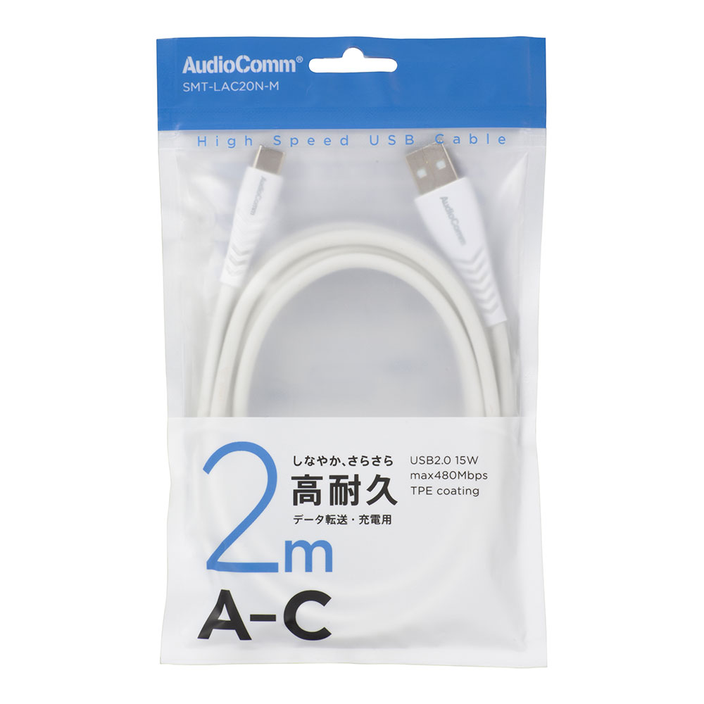 - AudioComm USBケーブル USB-A to C 2m 高耐久 ホワイト [品番]01-7235