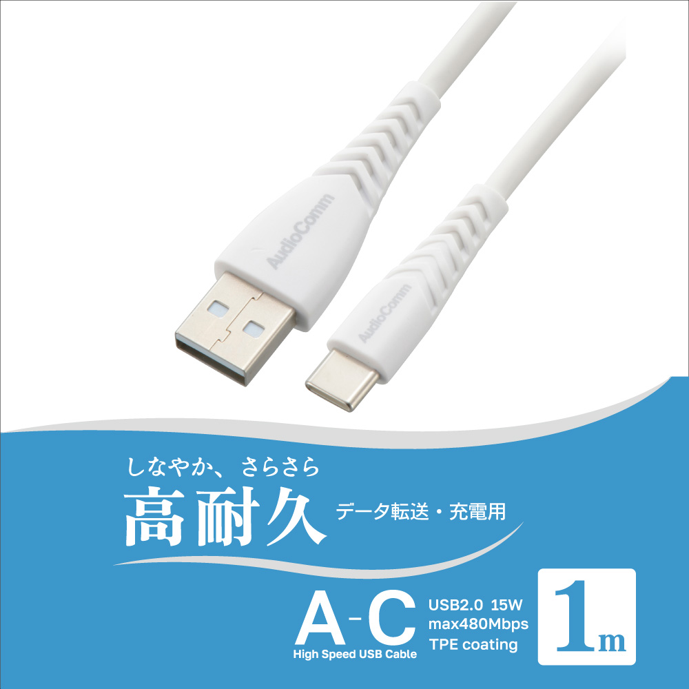 AudioComm USBケーブルA-C 1m 高耐久 ホワイト [品番]01-7263