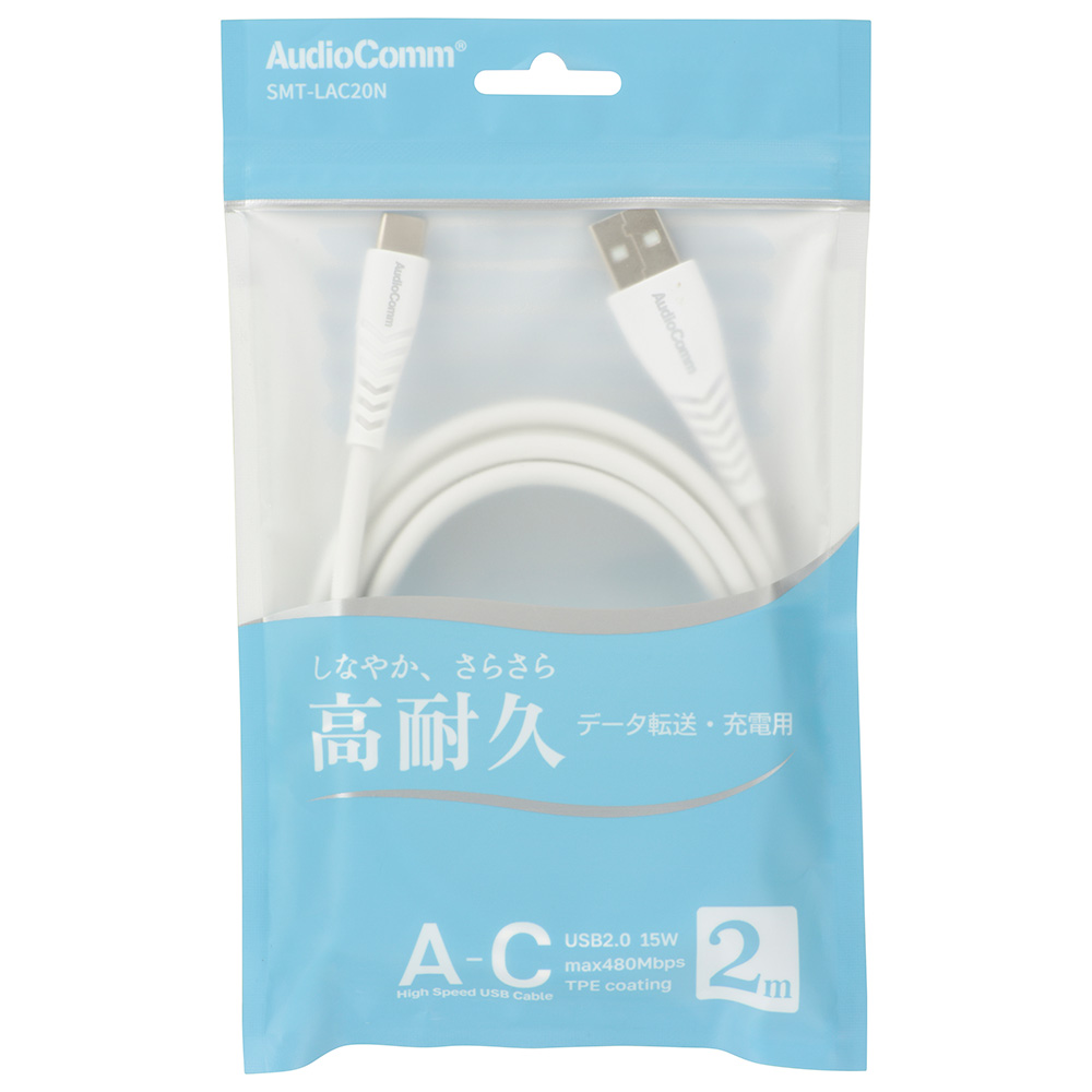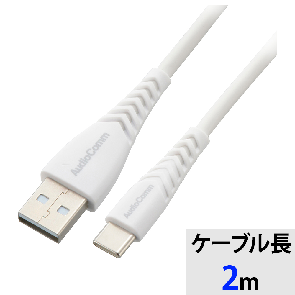 AudioComm USBケーブルA-C 2m 高耐久 ホワイト [品番]01-7264