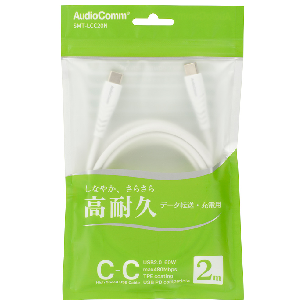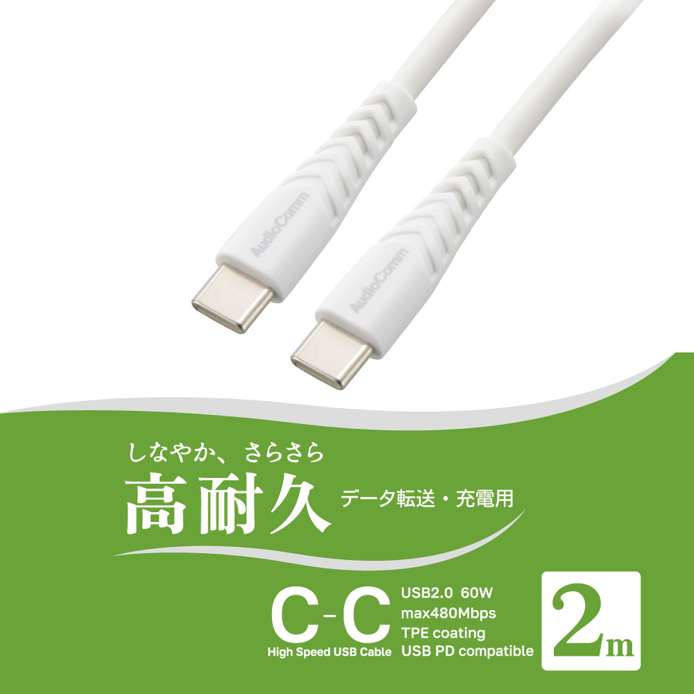 - AudioComm USBケーブルC-C 2m 高耐久 PD対応 ホワイト [品番]01-7266