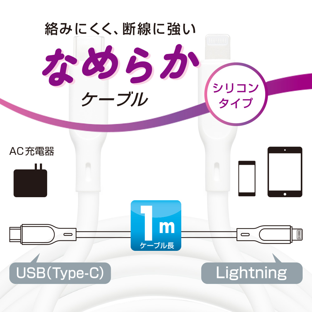 - AudioComm なめらかケーブル USB-C to Lightning 1m ホワイト [品番]01-7345