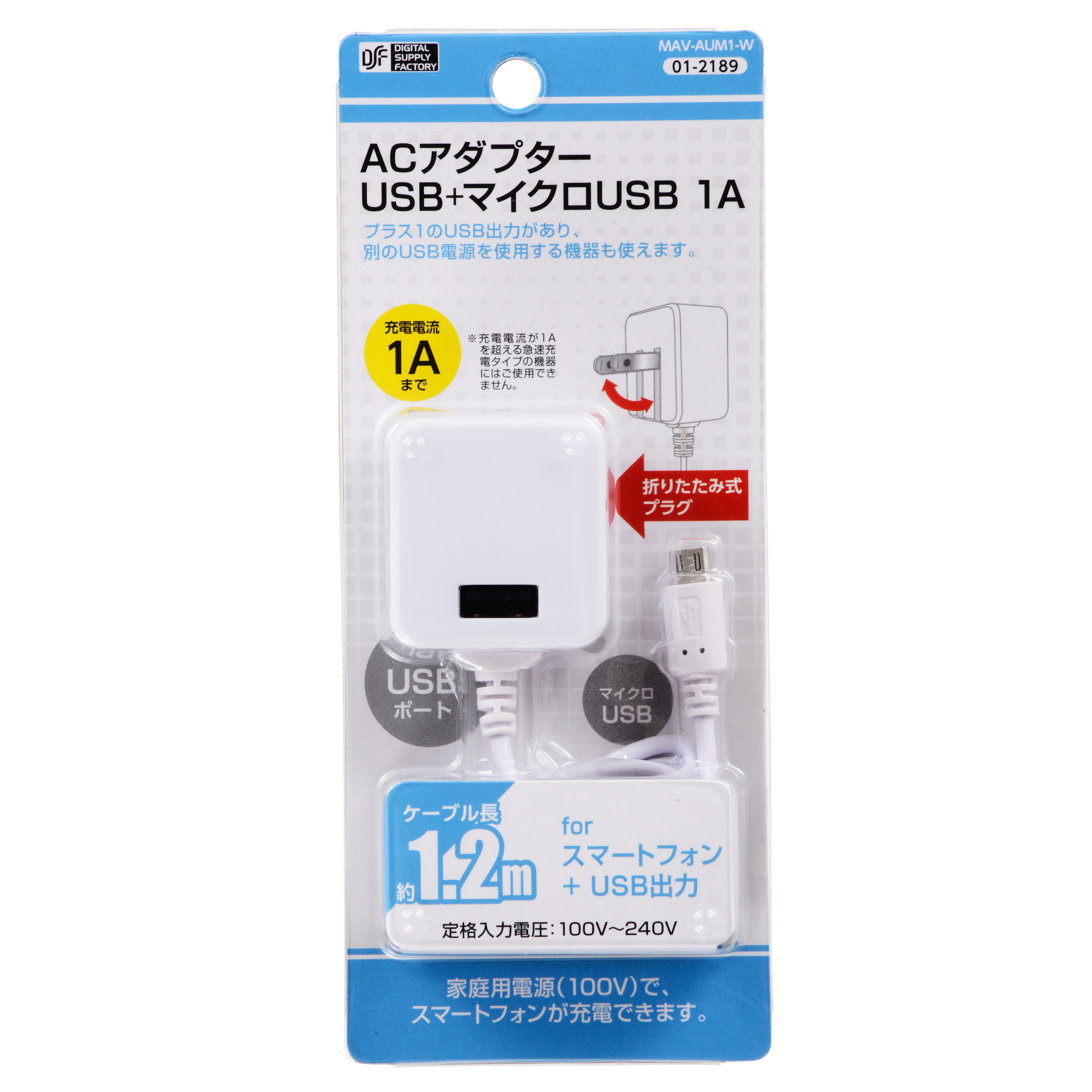 - ACアダプター USB+MicroUSB 1A [品番]01-2189