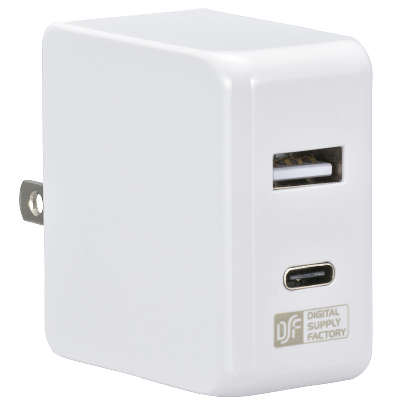 - ACアダプター USB TypeC+TypeA [品番]01-3743