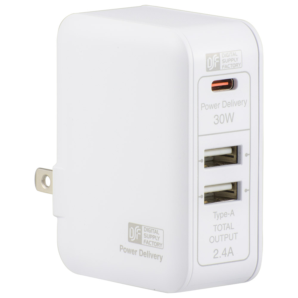 AC充電アダプター 3ポート 急速充電対応 [品番]01-3797