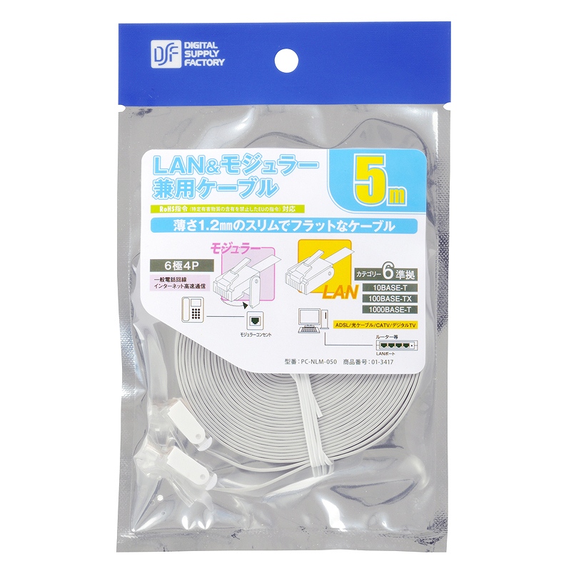 - LAN&モジュラー 兼用ケーブル 5m [品番]01-3417